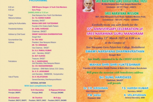 UNIVERSAL CONFEDERATION OF SREE NARAYANA GURU ORGANISATIONS INAUGURATION